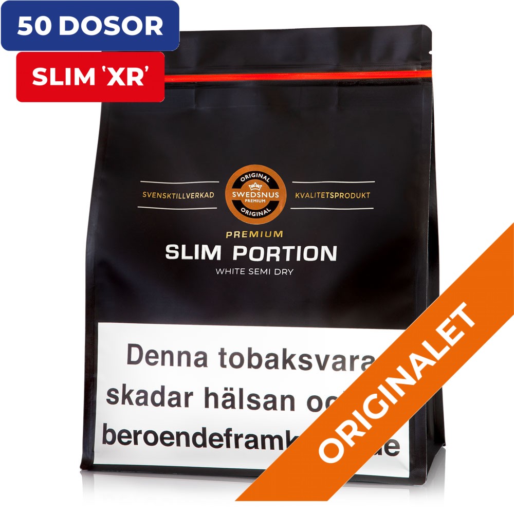 Premium Slim är Swedsnus version av ”XR”-formatet, färdig att snusa direkt. Prillans om är fyllig och aningen långsmal är framtagen för god passform.