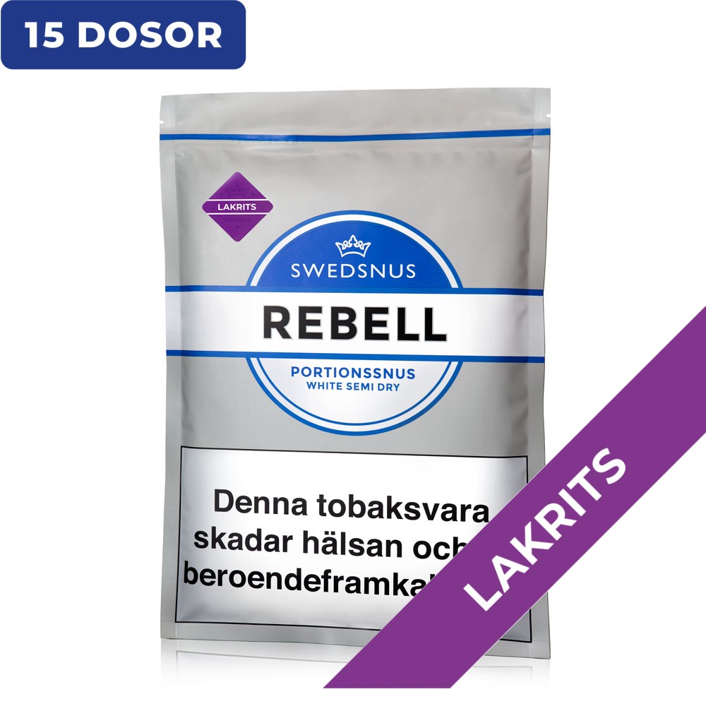 Färdig att snusa direkt. Rebell Lakrits portionssnus är smaksatt med naturlig olja ifrån anisfrö och har en kraftig och djup smak av lakrits, balanserad med en mild rökighet och lätt sälta. Smaken i kombination med vår tobak av högsta kvalitet gör den till ett av de mest smakfulla lakritssnusen på marknaden. Snuset tillverkas småskaligt i Swedsnus egen fabrik i Småland, enligt svensk hantverkstradition och utan några som helst onödiga tillsatser!